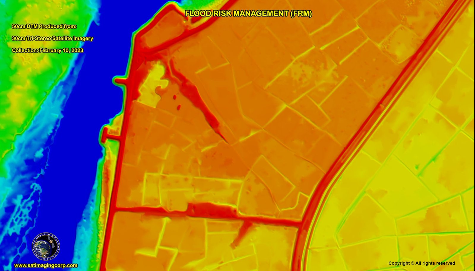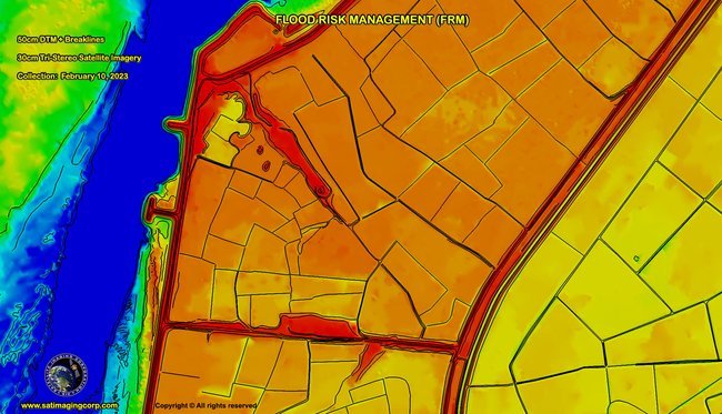 High-resolution satellite imagery and DTM data allow post-flood analysis to evaluate the effectiveness of flood defenses, infrastructure resilience, and recovery efforts, which can improve future flood risk management. Satellite imagery and DTMs support a proactive approach to flood management by enabling accurate risk mapping, real-time response, and long-term planning for climate resilience.