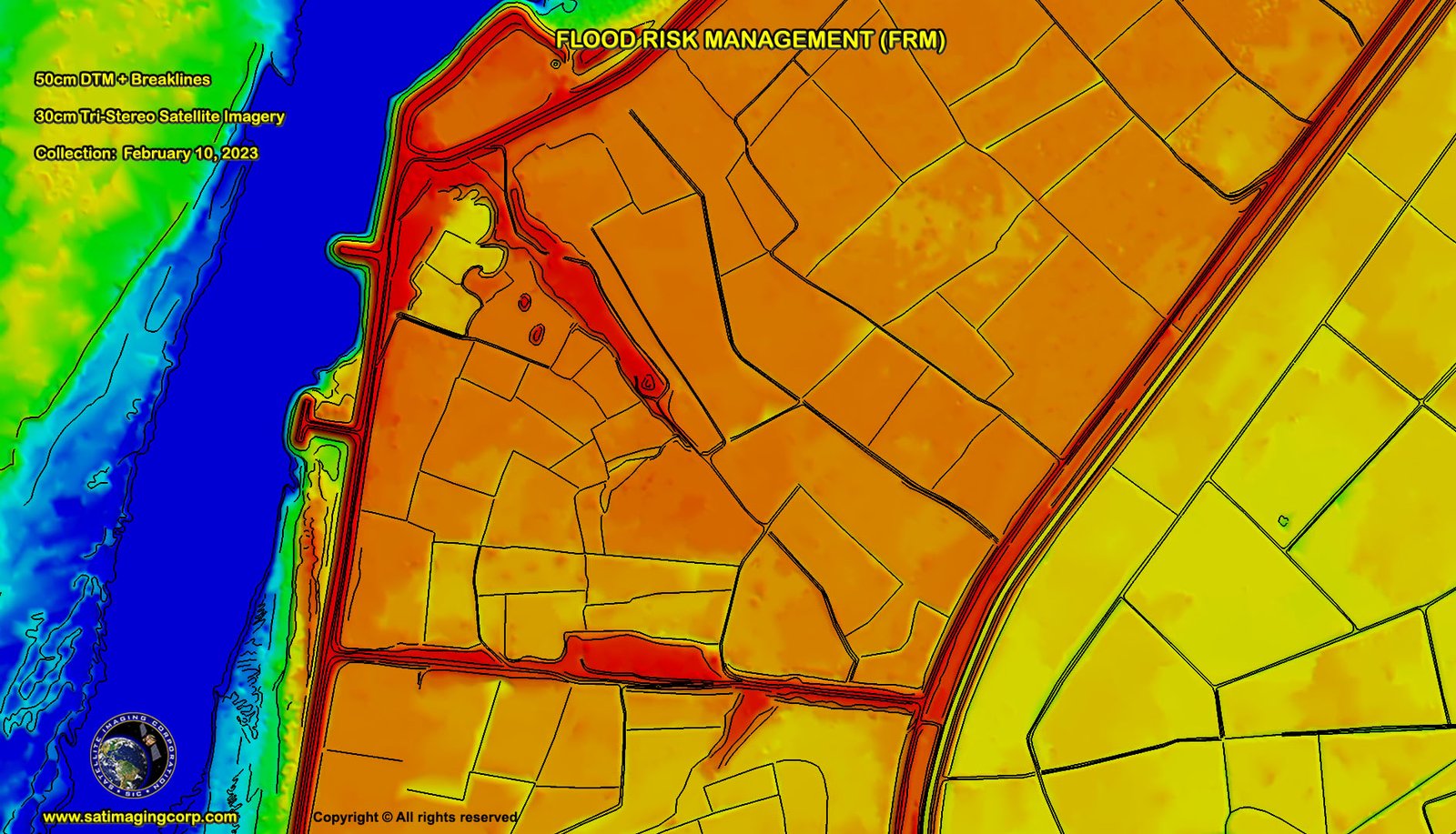 Stereo and Tri-Stereo satellite imagery and high-resolution Digital Terrain Models (DTMs) are invaluable tools in flood risk management, providing essential data for assessing natural hazards, environmental monitoring, and climate change impacts.