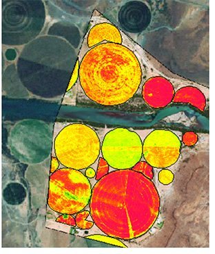 When agriculture management software is not in place, vegetation and soil index imagery can be reviewed in Google Earth Pro™ for regional farmers to identify areas in the fields, requiring a closer analysis and deciding if additional crop irrigation or fertilization is required.